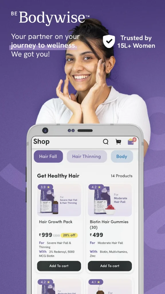 Be Bodywise is an integrated health and wellness platform designed specifically for women’s health and wellness needs. The app offers personalized solutions and professional guidance covering skincare, haircare, nutrition, menstrual and reproductive health, mental well-being, and fitness.